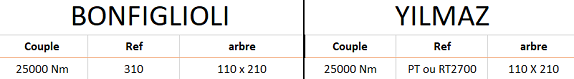 Toutes les informations ne vous sont données qu'à titre indicatif et ne pourront engager notre responsabilité. Nous vous remercions de contrôler l'ensemble des côtes (diamètre d'arbre, hauteur d'axe, fixation bride ou pattes...).