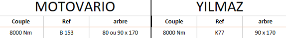 Toutes les informations ne vous sont données qu'à titre indicatif et ne pourront engager notre responsabilité. Nous vous remercions de contrôler l'ensemble des côtes (diamètre d'arbre, hauteur d'axe, fixation bride ou pattes...).