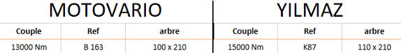 Toutes les informations ne vous sont données qu'à titre indicatif et ne pourront engager notre responsabilité. Nous vous remercions de contrôler l'ensemble des côtes (diamètre d'arbre, hauteur d'axe, fixation bride ou pattes...).