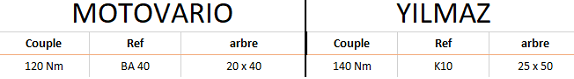 Toutes les informations ne vous sont données qu'à titre indicatif et ne pourront engager notre responsabilité. Nous vous remercions de contrôler l'ensemble des côtes (diamètre d'arbre, hauteur d'axe, fixation bride ou pattes...).