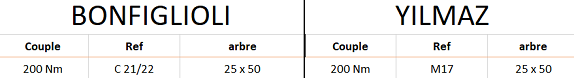 Toutes les informations ne vous sont données qu'à titre indicatif et ne pourront engager notre responsabilité. Nous vous remercions de contrôler l'ensemble des côtes (diamètre d'arbre, hauteur d'axe, fixation bride ou pattes...).