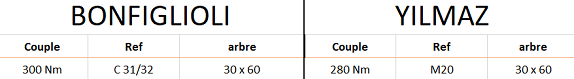 Toutes les informations ne vous sont données qu'à titre indicatif et ne pourront engager notre responsabilité. Nous vous remercions de contrôler l'ensemble des côtes (diamètre d'arbre, hauteur d'axe, fixation bride ou pattes...).