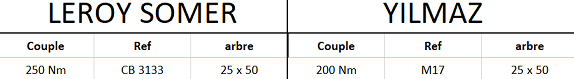 Toutes les informations ne vous sont données qu'à titre indicatif et ne pourront engager notre responsabilité. Nous vous remercions de contrôler l'ensemble des côtes (diamètre d'arbre, hauteur d'axe, fixation bride ou pattes...).