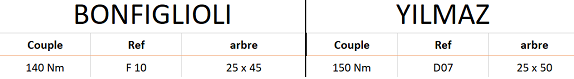 Toutes les informations ne vous sont données qu'à titre indicatif et ne pourront engager notre responsabilité. Nous vous remercions de contrôler l'ensemble des côtes (diamètre d'arbre, hauteur d'axe, fixation bride ou pattes...).