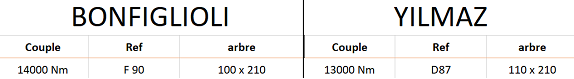 Toutes les informations ne vous sont données qu'à titre indicatif et ne pourront engager notre responsabilité. Nous vous remercions de contrôler l'ensemble des côtes (diamètre d'arbre, hauteur d'axe, fixation bride ou pattes...).