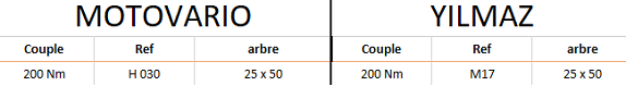 Toutes les informations ne vous sont données qu'à titre indicatif et ne pourront engager notre responsabilité. Nous vous remercions de contrôler l'ensemble des côtes (diamètre d'arbre, hauteur d'axe, fixation bride ou pattes...).