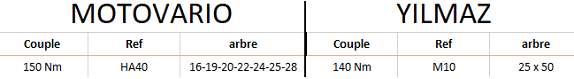 Toutes les informations ne vous sont données qu'à titre indicatif et ne pourront engager notre responsabilité. Nous vous remercions de contrôler l'ensemble des côtes (diamètre d'arbre, hauteur d'axe, fixation bride ou pattes...).