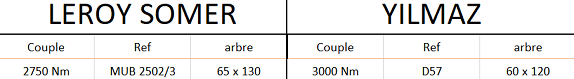 Toutes les informations ne vous sont données qu'à titre indicatif et ne pourront engager notre responsabilité. Nous vous remercions de contrôler l'ensemble des côtes (diamètre d'arbre, hauteur d'axe, fixation bride ou pattes...).