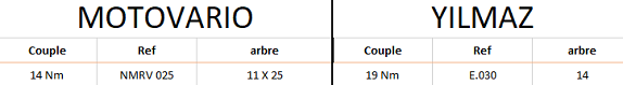 Toutes les informations ne vous sont données qu'à titre indicatif et ne pourront engager notre responsabilité. Nous vous remercions de contrôler l'ensemble des côtes (diamètre d'arbre, hauteur d'axe, fixation bride ou pattes...).