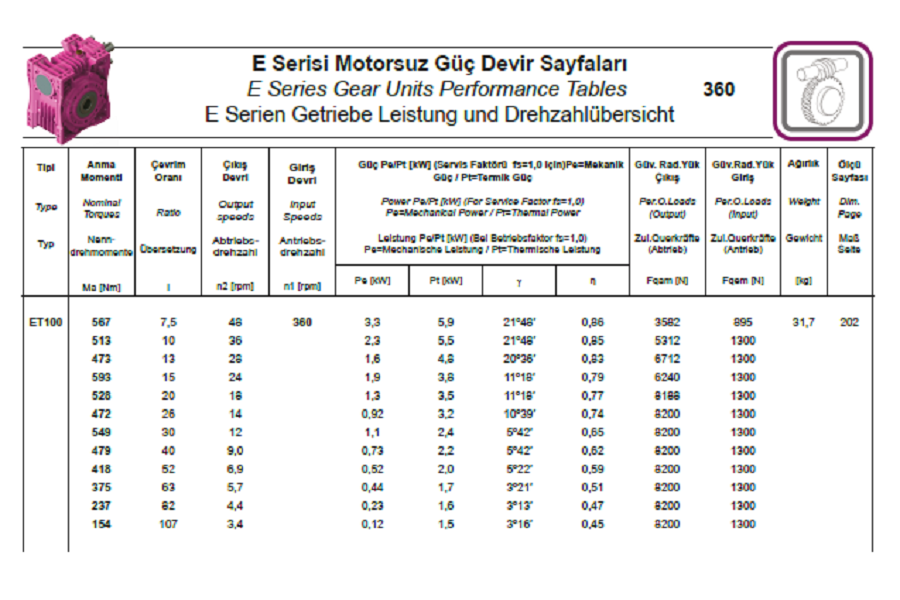 Vitesse Entrée Réducteur