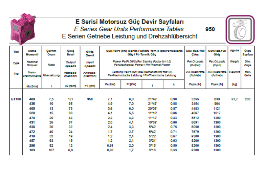 Vitesse Entrée 950 tr/min