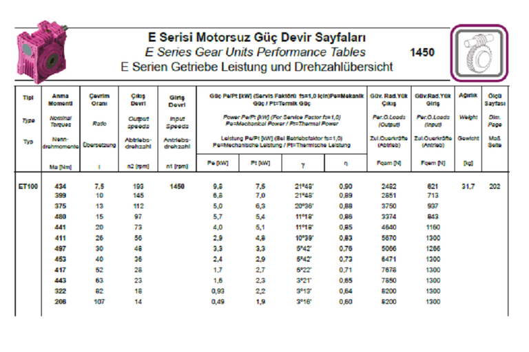 Vitesse Entrée 1450 tr/min