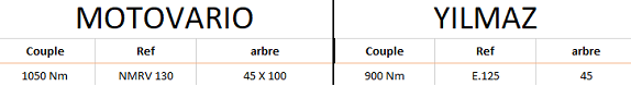 Toutes les informations ne vous sont données qu'à titre indicatif et ne pourront engager notre responsabilité. Nous vous remercions de contrôler l'ensemble des côtes (diamètre d'arbre, hauteur d'axe, fixation bride ou pattes...).