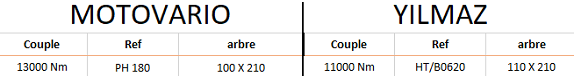 Toutes les informations ne vous sont données qu'à titre indicatif et ne pourront engager notre responsabilité. Nous vous remercions de contrôler l'ensemble des côtes (diamètre d'arbre, hauteur d'axe, fixation bride ou pattes...).