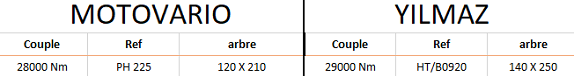 Toutes les informations ne vous sont données qu'à titre indicatif et ne pourront engager notre responsabilité. Nous vous remercions de contrôler l'ensemble des côtes (diamètre d'arbre, hauteur d'axe, fixation bride ou pattes...).