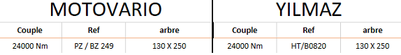 Toutes les informations ne vous sont données qu'à titre indicatif et ne pourront engager notre responsabilité. Nous vous remercions de contrôler l'ensemble des côtes (diamètre d'arbre, hauteur d'axe, fixation bride ou pattes...).