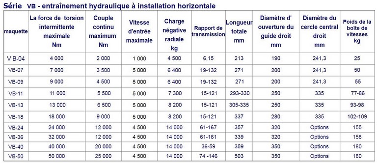 - Couple intermittant maximal : 4000Nm à 50000Nm
