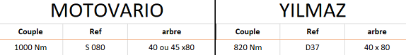 Toutes les informations ne vous sont données qu'à titre indicatif et ne pourront engager notre responsabilité. Nous vous remercions de contrôler l'ensemble des côtes (diamètre d'arbre, hauteur d'axe, fixation bride ou pattes...).