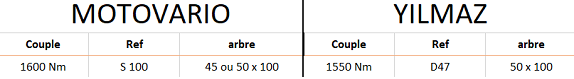 Toutes les informations ne vous sont données qu'à titre indicatif et ne pourront engager notre responsabilité. Nous vous remercions de contrôler l'ensemble des côtes (diamètre d'arbre, hauteur d'axe, fixation bride ou pattes...).