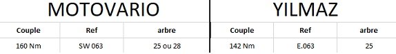 Toutes les informations ne vous sont données qu'à titre indicatif et ne pourront engager notre responsabilité. Nous vous remercions de contrôler l'ensemble des côtes (diamètre d'arbre, hauteur d'axe, fixation bride ou pattes...).