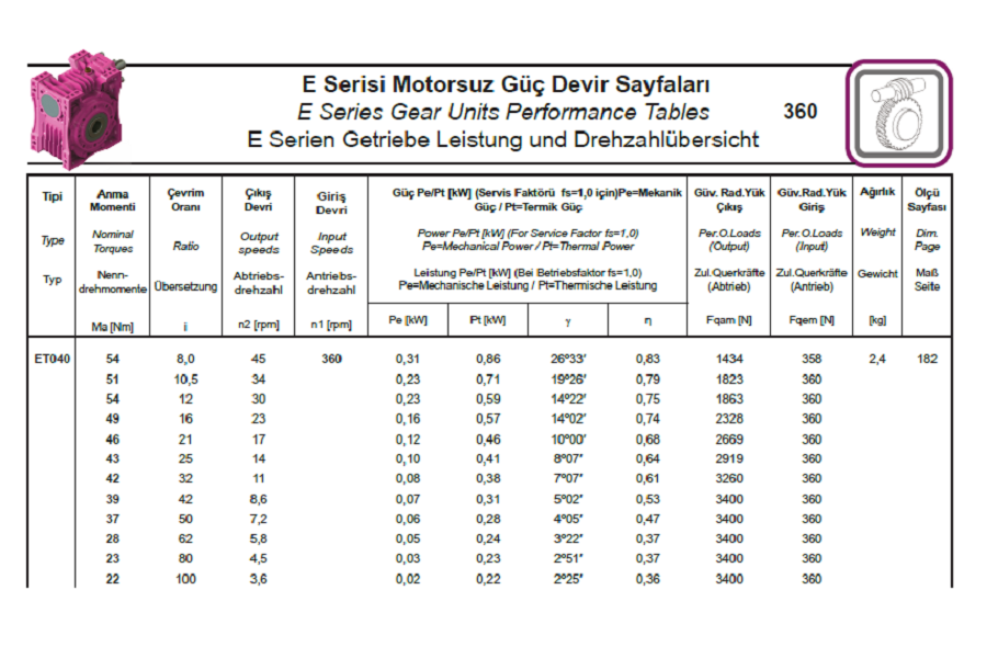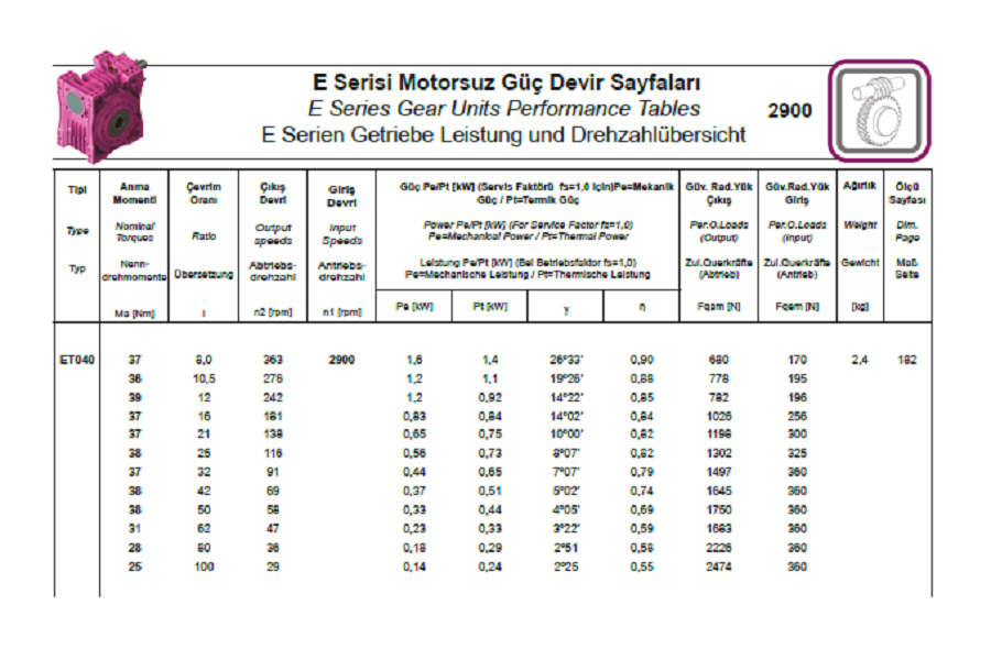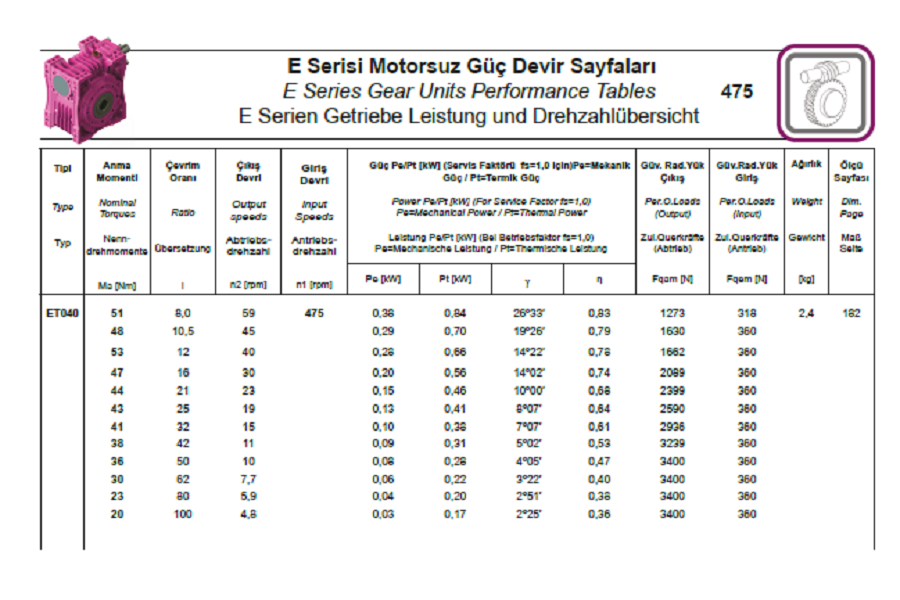 Vitesse Entrée Réducteur